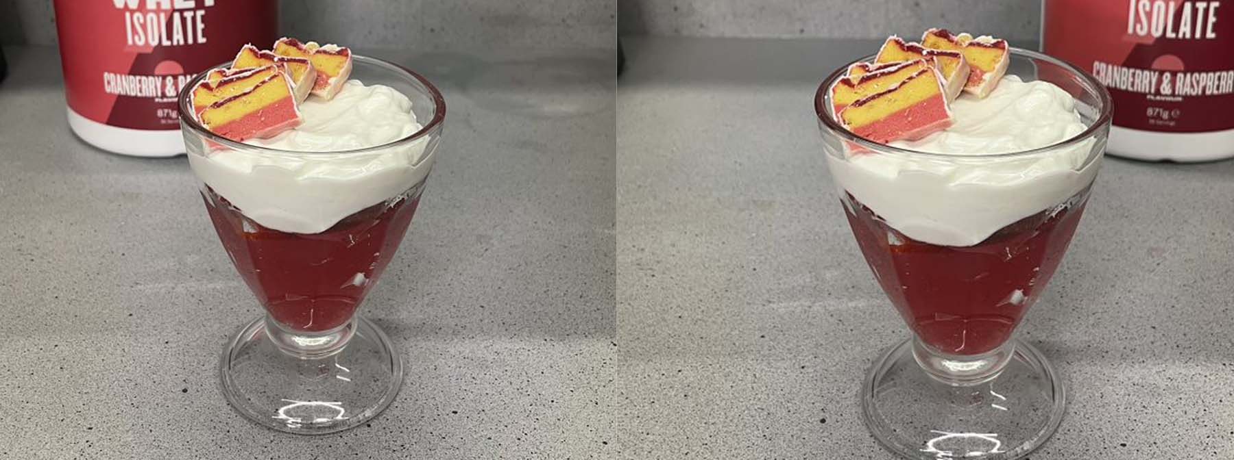 Pokud chcete něco sladkého, co zažene chutě po večeři, ale soustředíte se na svoje makra, tenhle recept je 100% pro vás. Má několik vrstev, je plný ovocné chuti a má neuvěřitelných 44g bílkovin na jednu porci. Dezert, který nemůžeme odmítnout.
