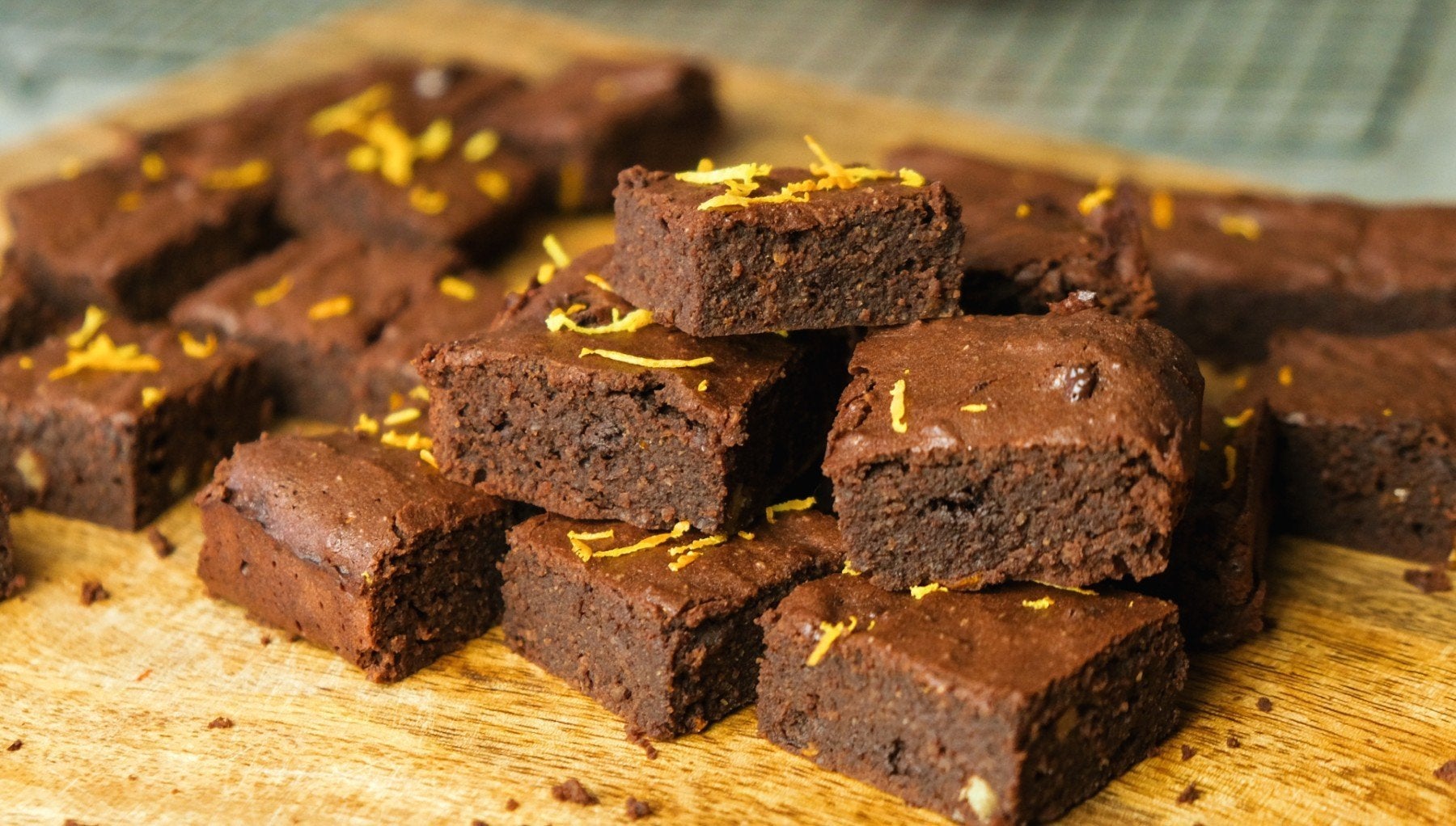 Tyhle čokoládovo-pomerančové brownies od Nialla Kirklanda jsou jednoduché na přípravu a výsledek za to víc než stojí. Použil na ně štědrou dávku hořké čokolády s pomerančovou příchutí a kakao, aby vznikla bohatá chuť, spolu s javorovým sirupem jakožto přírodním sladidlem, a pomerančovou kůru pro citrusový říz. Nebe.