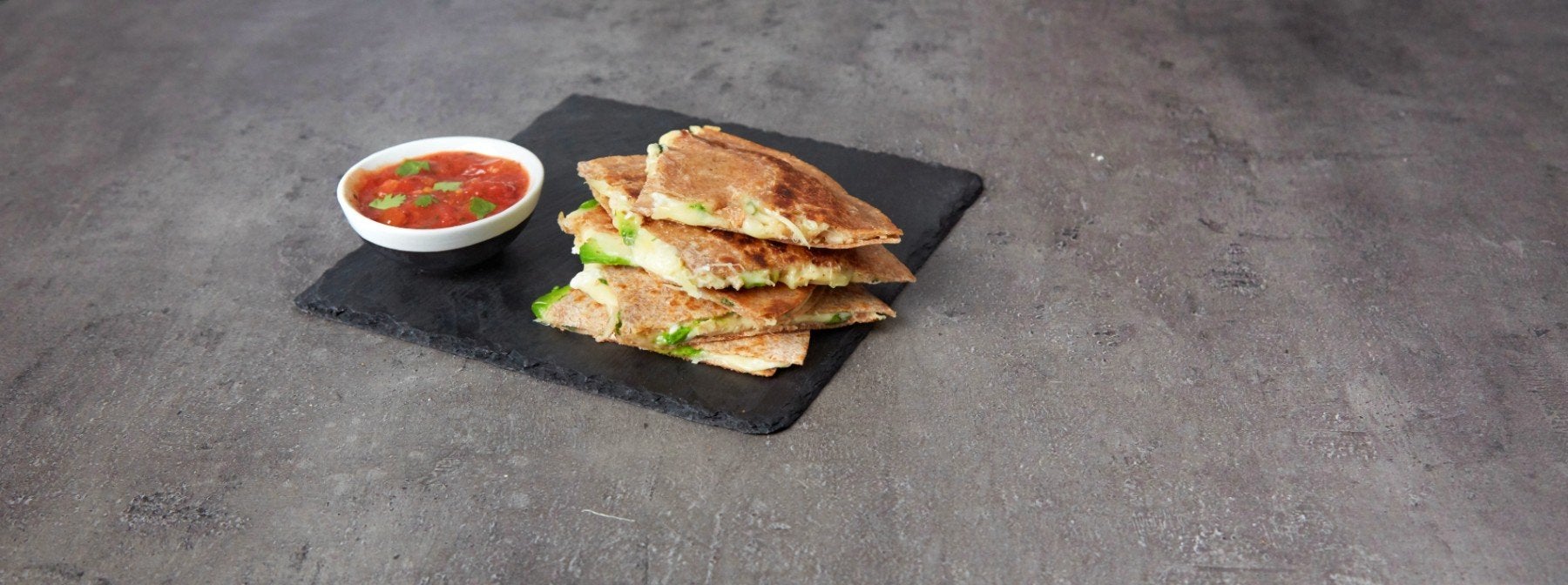 - Nakrájejte quesadilly na čtvrtiny a podávejte se salsou.