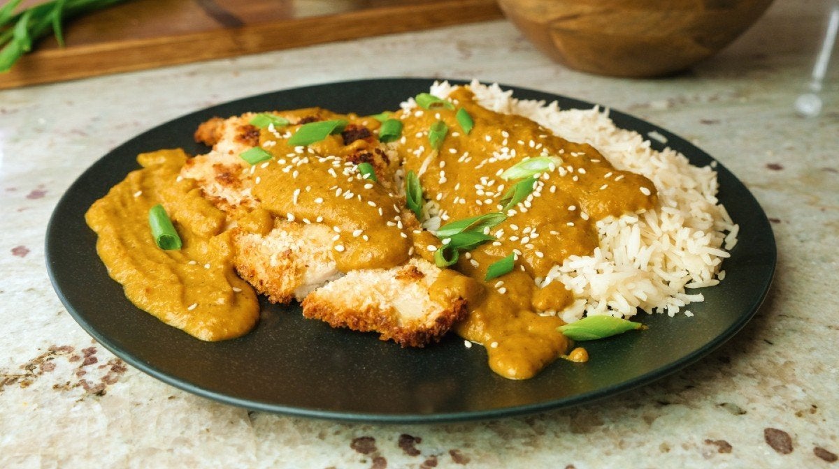 Je to perfektní kombinace jemného kuřecího prsa, křupavé strouhanky a husté kari omáčky. Popravdě si myslíme, že to je prostě nebe na talíři.