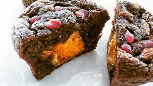 - Směs rovnoměrně rozdělte do devíti košíčků na muffiny a pečte v troubě zhruba 12 minut.