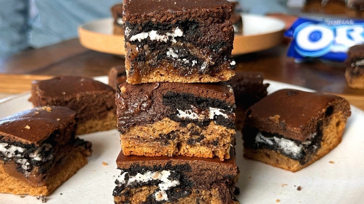 Na tenhle neskutečně lahodný recept od Nialla Kirklanda se nám sbíhají sliny už jen při vyslovení jeho názvu. Zkombinoval pořádnou vrstvu cookie těsta s bohatým, měkkým brownie a střed naplnil oreo sušenkami. Prostě neskutečné.