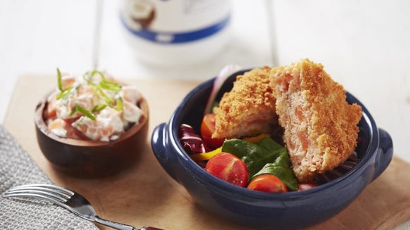 - Žampiony osmažte na trošce kokosového oleje do poloměkka. Mezitím osolte.