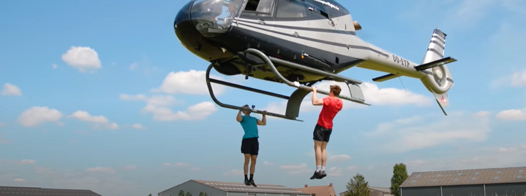 Přistávací lyže helikoptéry jsou tlustší a hůře uchopitelné než klasické pull-up bars. Navíc se hýbou ve vzduchu. Takže muselo přijít na řadu nějaké DIY. Poté, co Arjen navrhl hýbající se pull-up bar z PVC trubky a provazu, měli přesně to, co potřebovali, aby mohli trénovat.